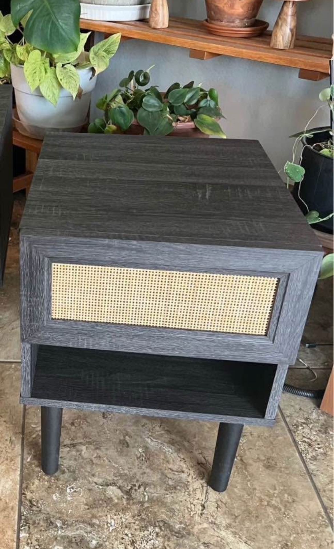 2 modern end tables One has a small crack But Bohemian furniture and tables, coffee table, furniture, bedroom, dining room, living room wicker rattan rattan grey black