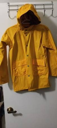 Children's raincoat size 10 runs on the large side This could be for boy or girl Has a hood and pockets, and snaps to close it Hardly used in great shape If this is posted, yes it is available