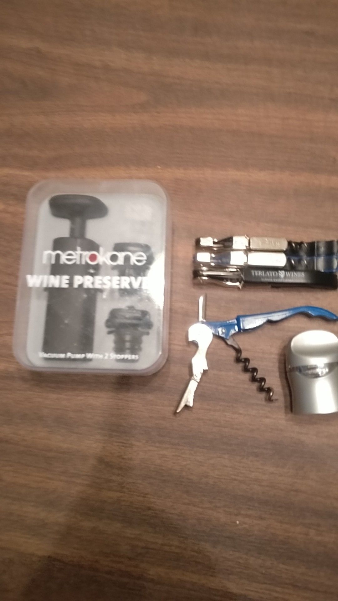 Metrokane wine bottle preserver and Pulltap's wine keys waiter's corkscrew opener