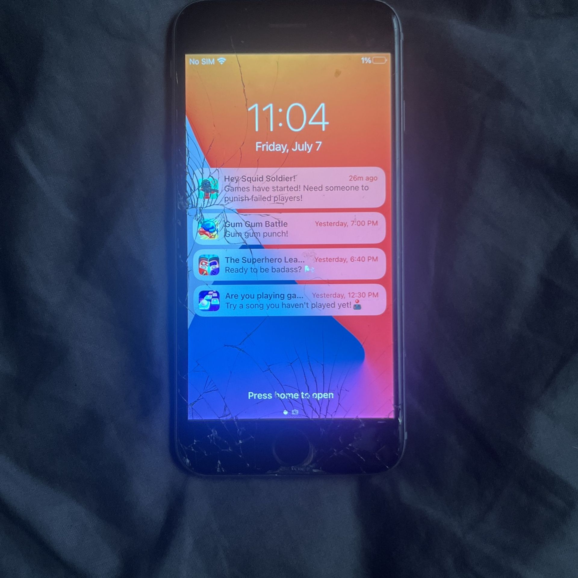 Cracked and sim locked. Good for wifi iCloud clear. 32 gb