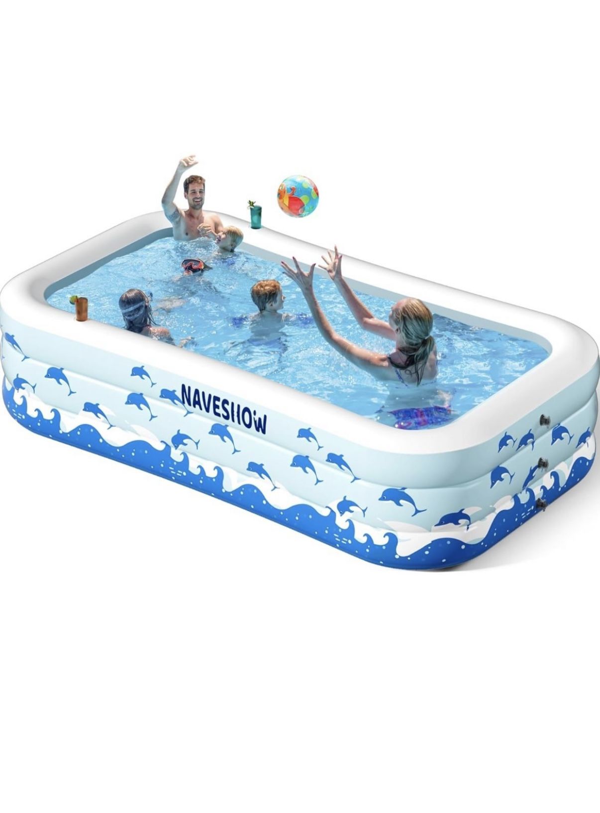 Brand new Inflatable Swimming Pool with Seats, 130" × 72" × 22" Full-Sized Durable PVC Thickened Above Ground Family Blow Up Pool for Outdoor Summer Water Party Backyard, Garden and Lawn. Air pump is not included. Amazon price $79+tax