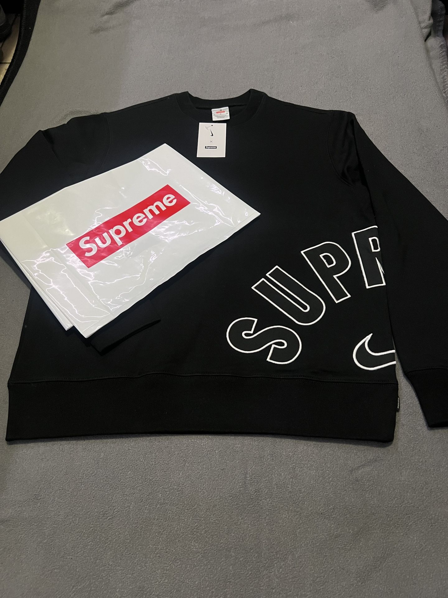 Supreme x Nike crewneck, black, size M. Still has tags and comes with Supreme bag.