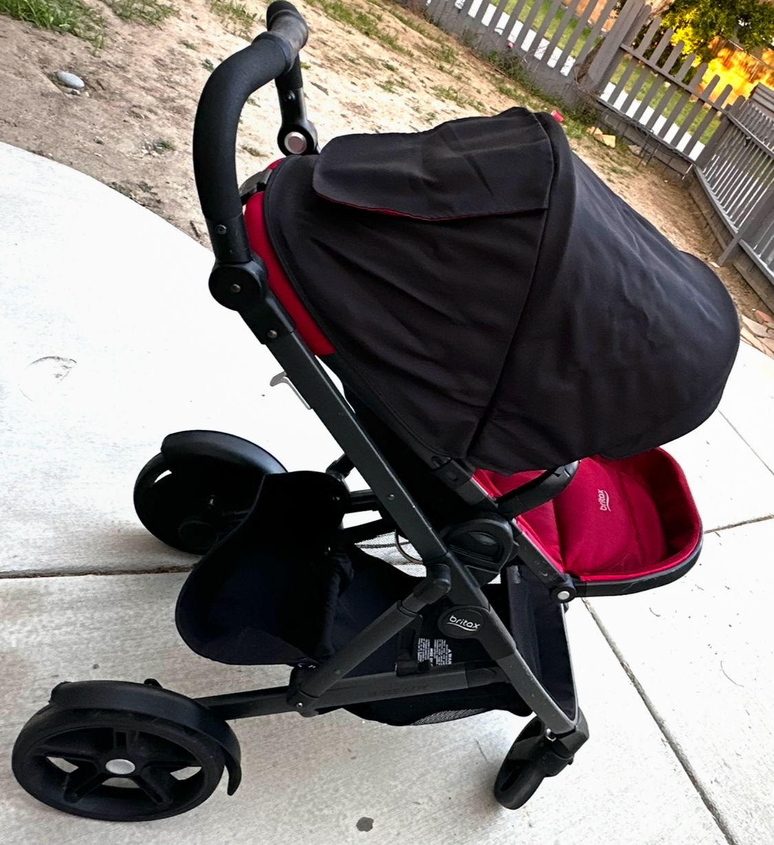 Britax stroller Came with one seat Convertible to double stroller Fits Britax infant car seats Clean No rips No stains Smoke free home Minor scratches Everything works Doesn’t have sun damage Very good quality Ride smoothly Is also a jogger stroller
