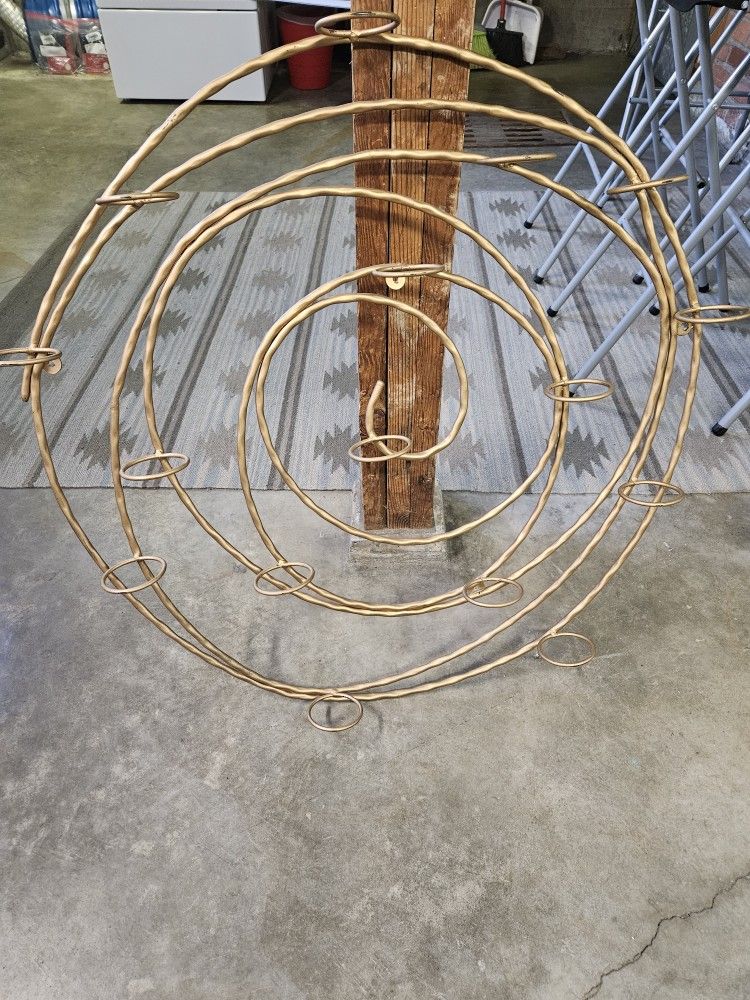 16 Tea Light Candle Wall Decor BRONZE Dimensions: 34" wide X 32¼" tall Each tea light circle dimension: 3⅛" wide edge to edge (2¾" inside edge to edge) 》Missing the glass Tea Light Holders《 》You could buy new on Amazon《 》https://offerup.com/redirect/?o=aHR0cHM6Ly9hLmNvL2QvZWpYMlB4Mg==《 ●Royal Imports Candle Holder Hanging Oyster Votive Tealight Glass for Wedding, Birthday, Holiday & Home Decoration, Set of 6 ¤ I think it'd be cute used as a Wine Bottle Holder¤