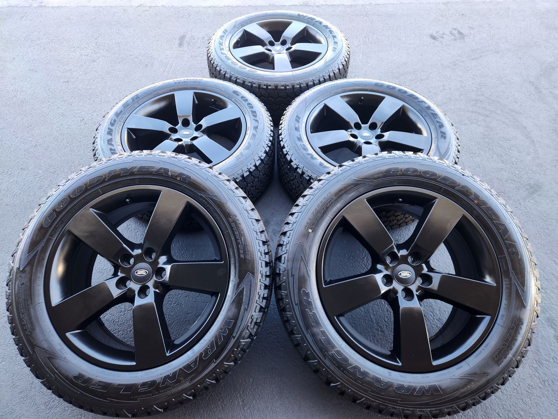 20" Land Rover Defender NEW Satin Black OEM Wheels And Tires - new satin black finish - New Goodyear Wrangler AT tires 99% tread on them - Factory OEM set