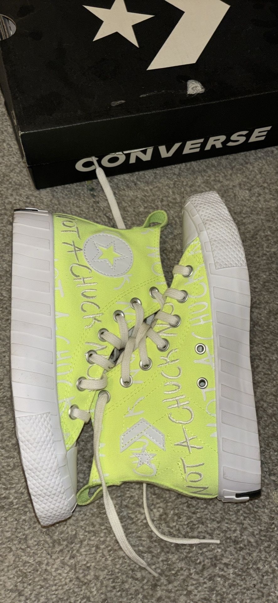 Win green converse shoes size 5 grade school got them for my girlfriend they are too big so the just sit s