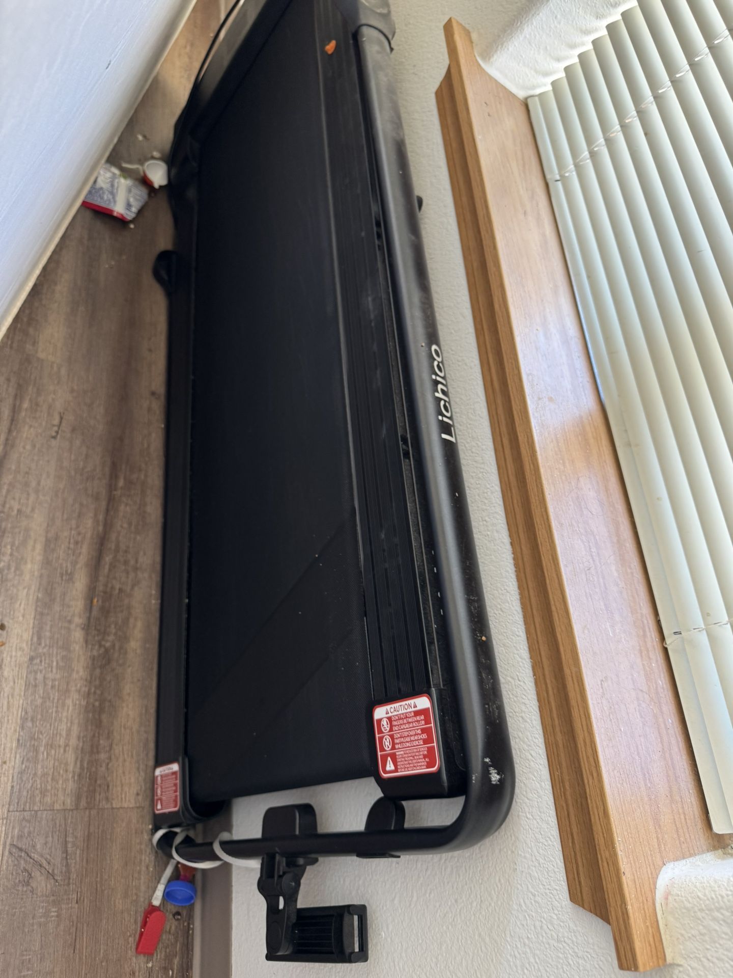 Used a few times comes with remote. Walking pad folds can fit easily behind or under a bed has phone holder.
