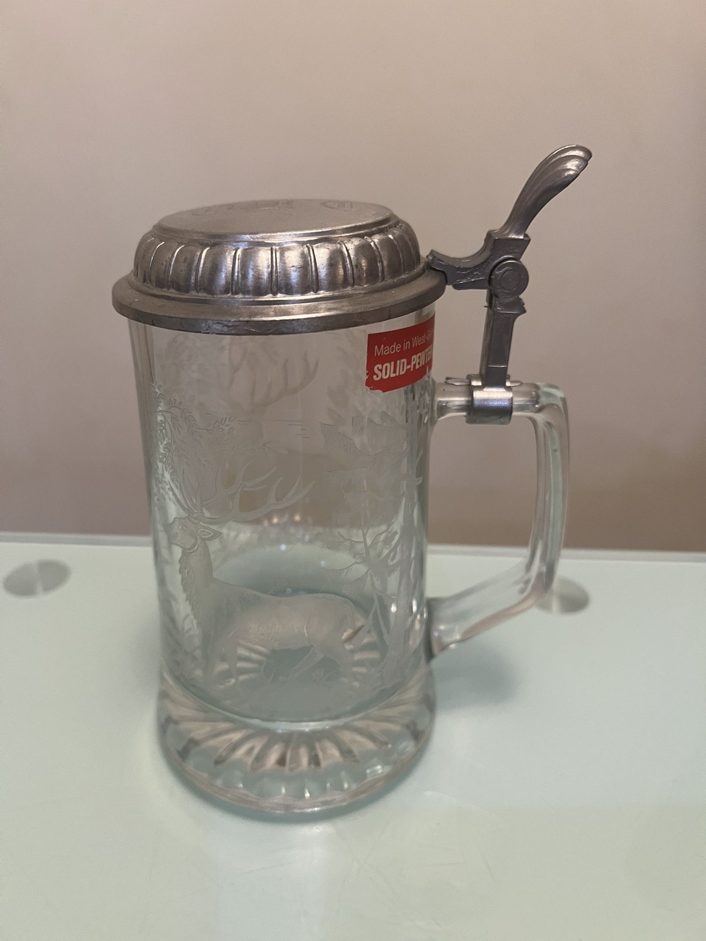 Vintage Anheuser-Busch Stein Berninghaus 1990 West Germany Pewter Itched Glass