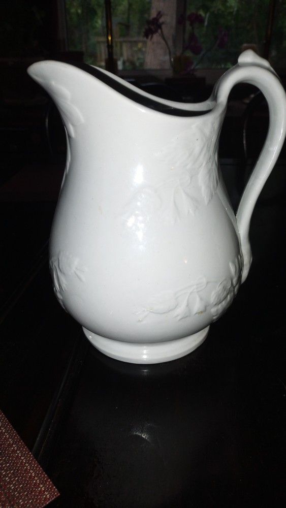 1800's George Jones stone china white pitcher. 10"x8". Stamped on bottom. Excellent condition.