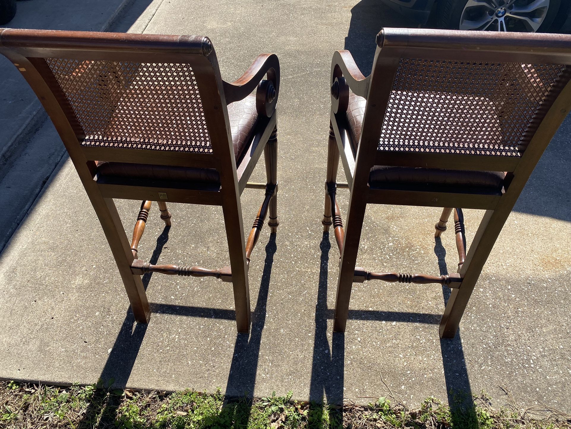 Solid wood, well crafted furniture. No rips or tears on the seat. 75 each obo or 150 for both
