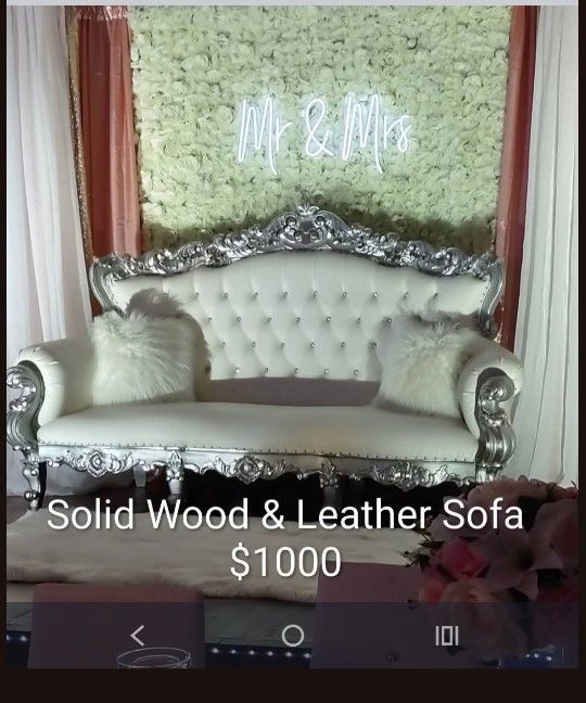 White Solid Wood Vintage Leather Sofa! Great for Wedding Venue or wedding planners $1000 or BEST OFFER
