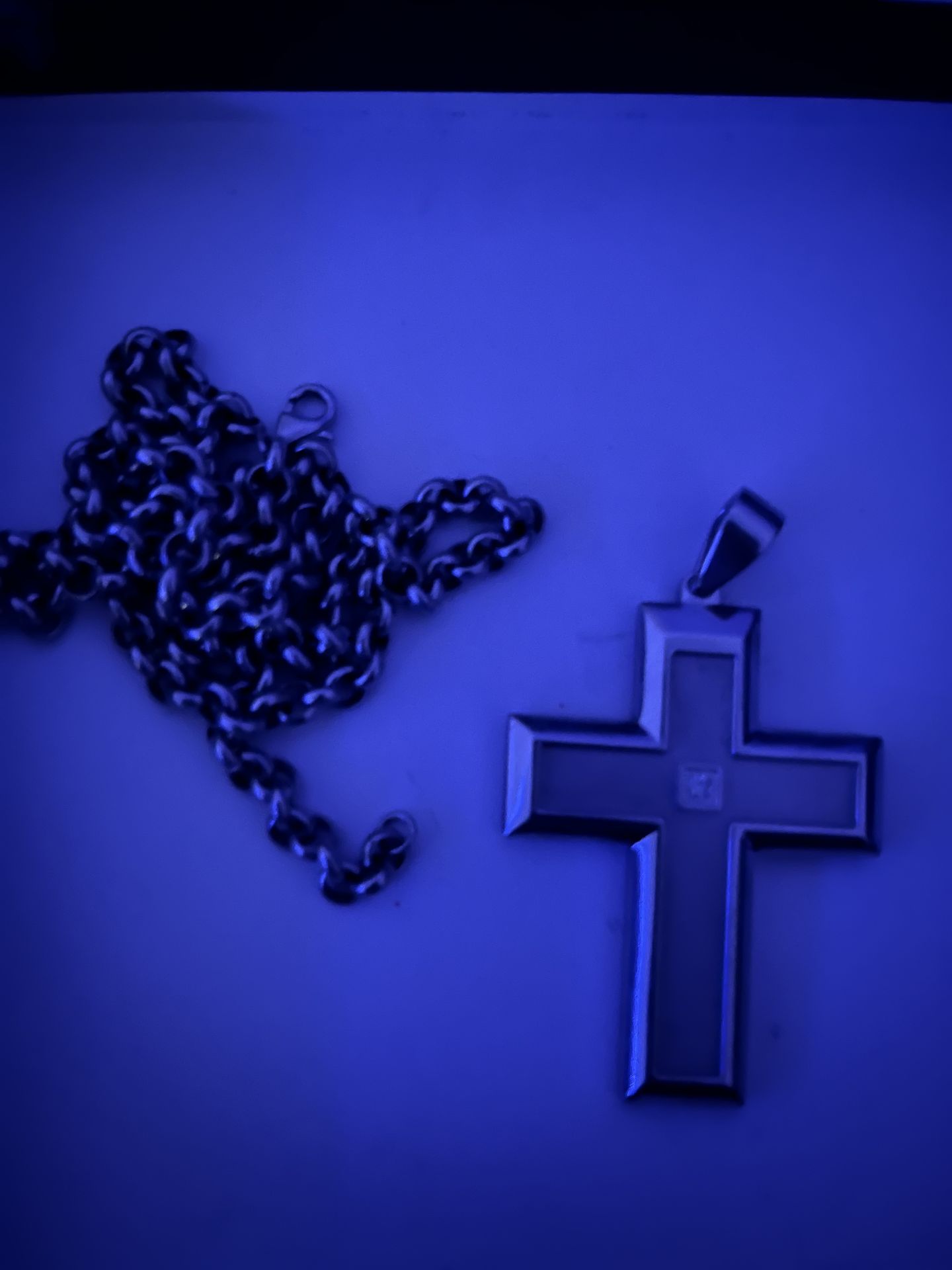 Large 2 3/4 Stainless Steel diamond cross 24” chain