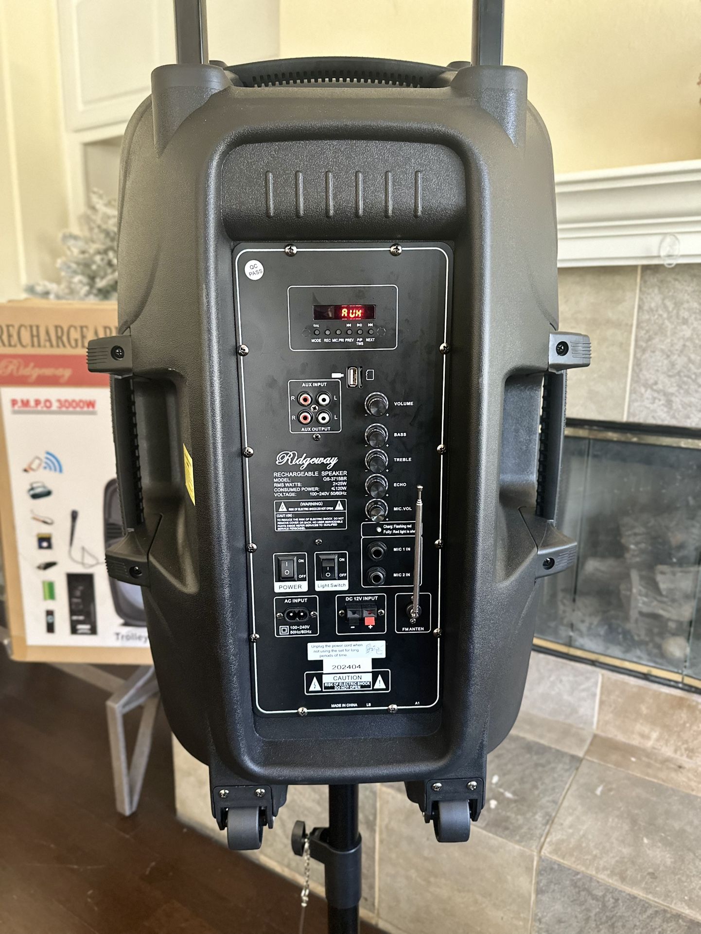 Rechargeable Music player - 15” Woofer MICROPHONE & CHARGER INCLUDED ! Bluetooth - Fm Radio - Rechargeable USB PORT - SD MEMORY SLOT - Portable Compatible with any Bluetooth device ! VERY LOUD ! GREAT FOR OUTDOORS AND PARTIES !