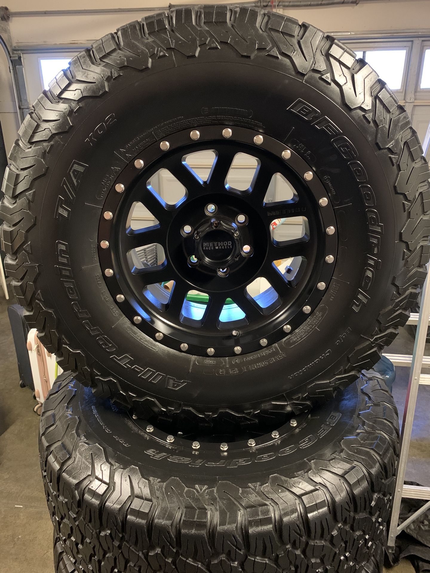 BFGoodrich All-Terrain T/A 35x12.50R17LT tires with 17” Method 306 mesh rims. Sensors and bolt’s included