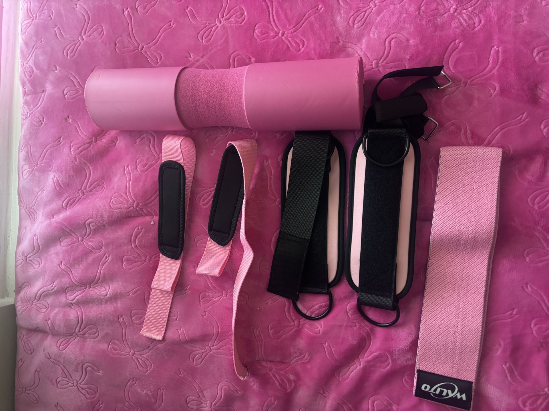 PICK UP ONLY ! WALITO 8Pcs Barbell Pad Set for Hip Thrust - Squat Pad,Gym Accessories for Women with Bar Bad,Bench Press, with Gym Ankle Straps,Resistance Bands for Working Out,Lifting Strap,Carry Bag