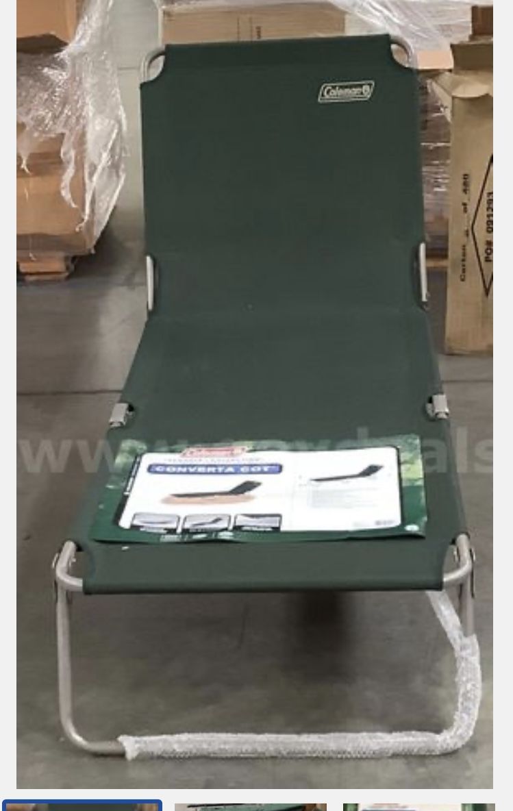 Looking for the ultimate in portable comfort for your next camping trip, backyard lounging, or emergency guest bedding? Check out these brand-new Coleman Convert-a-Cot from the Sequoia Collection! These surplus items are unused, still in their original packaging, and ready to provide reliable relaxation wherever you need it. Sourced from a government auction (https://offerup.com/redirect/?o=Z292ZGVhbHMuY29t), they’re in pristine condition with no wear or damage – just minor warehouse dust on the boxes.