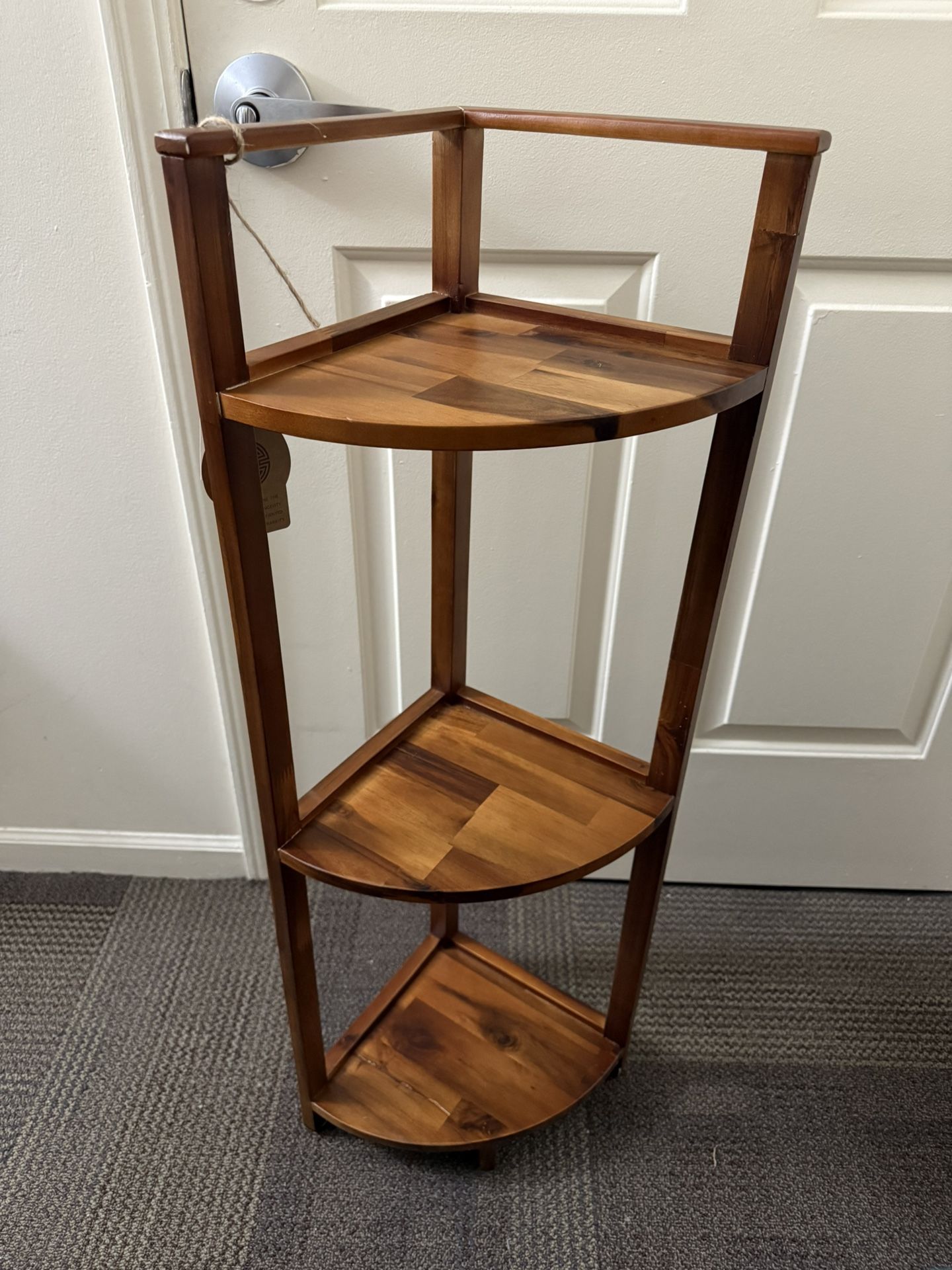 Wooden tiered shelfing. Brand new. Still has tags. No blemishes