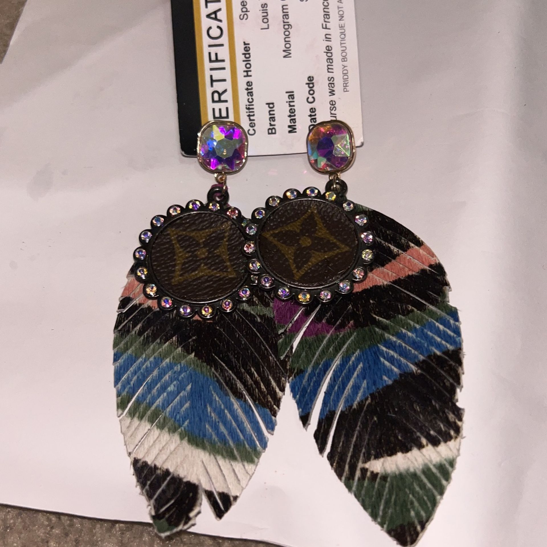 Stylish Upcycled designer earrings feathers are leather