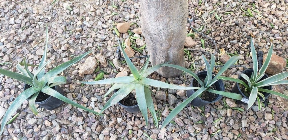 From the bottom Agave angustifolia, Blue Agave,and two Striata Aloe Vera All for 15 One Gal.pot Price is firm, Cash only Lake pleasant parkway and West Deer Valley Rd
