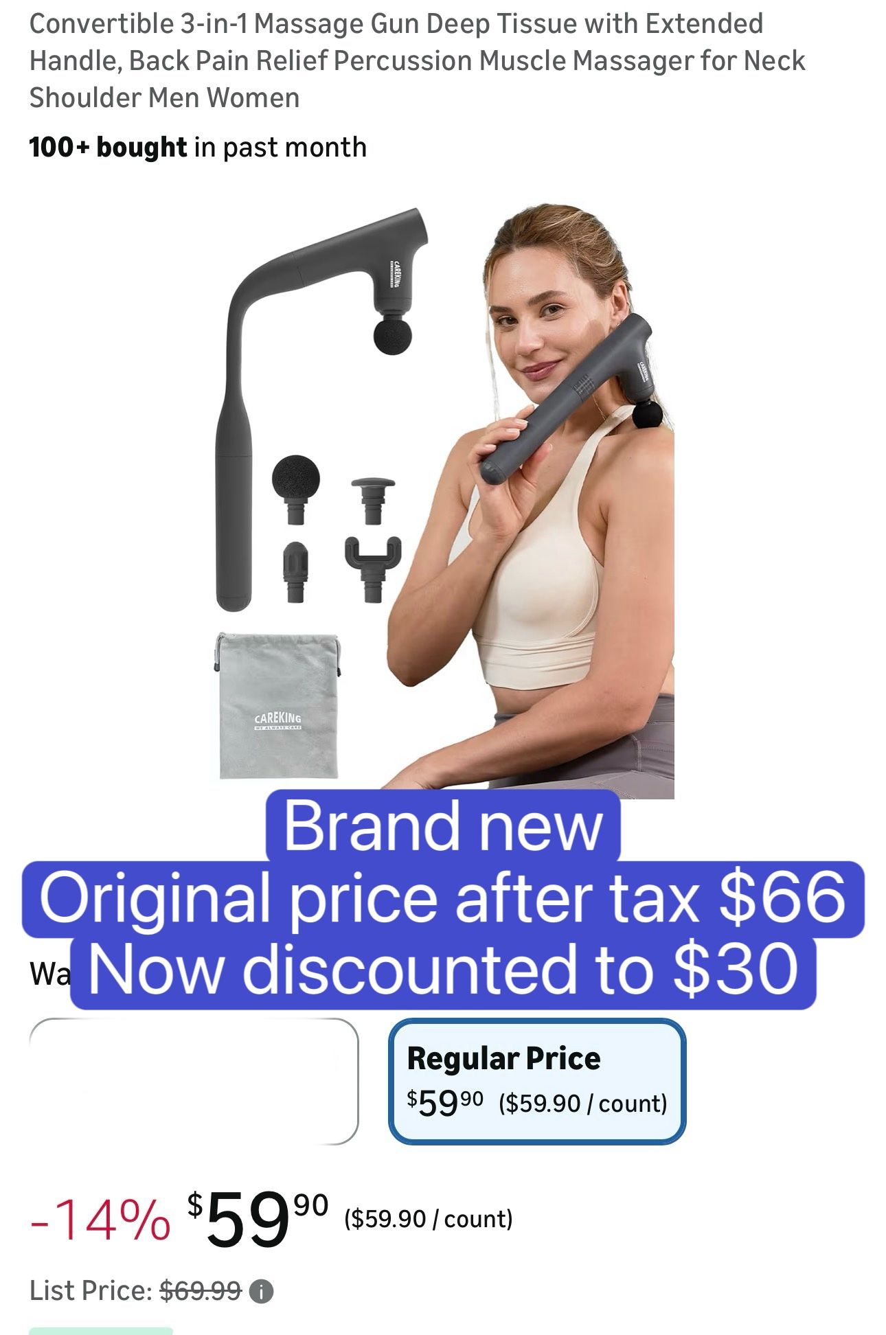 20 in stock Convertible 3-in-1 Massage Gun Deep Tissue with Extended Handle, Back Pain Relief Percussion Muscle Massager for Neck Shoulder Men Women