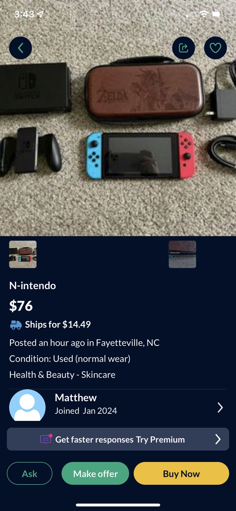 This man is a scammer please donāt buy from him he will ask for your number likely to use PayPal or cash app to take money and never send item! He sets unrealistically low prices to draw people in the Xbox in this picture sells for $500.00 he only wants $90.00 lol nothing he says lines up or make sense he told me video games hurts his feelings most the Nintendo ones lol so I assume mario hurt his feelingsš¤£