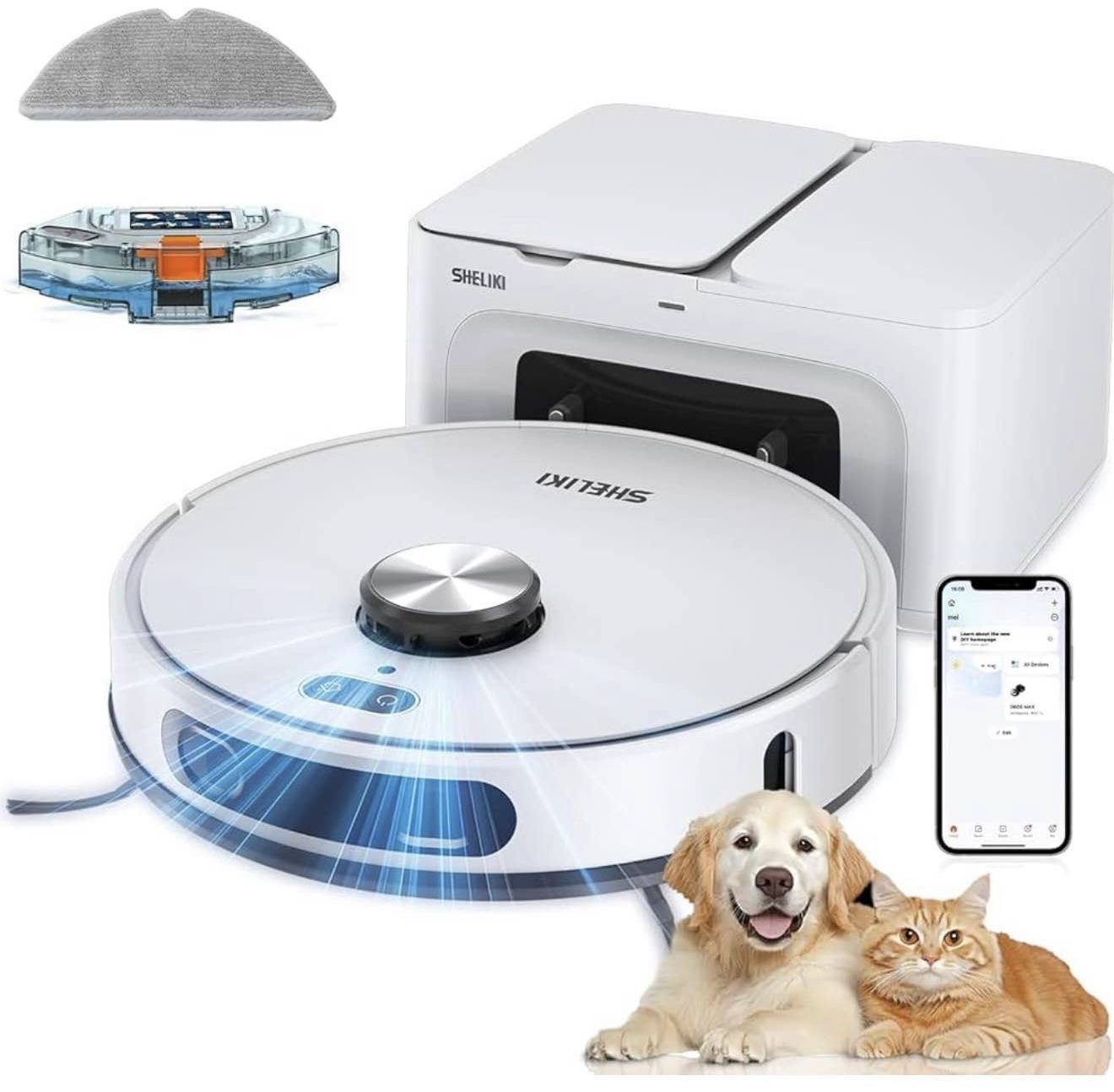Brand new in Unopend box Robot Vacuum and Mop, 3-in-1 Robotic Vacuum Cleaner with 70-Day Self-Emptying Base, 360° LiDAR Navigation & Smart Mapping, 6000Pa Strong Suction for Pet Hair, Carpets & Hard Floors Special Feature 360-Degree Swivel, Advanced Custom Cleaning, Anti-Fall, Automatic Dust Collection, LiDAR Navigation Color White Product Dimensions 12.88"L x 15.94"W x 15.75"H Automatic Self-Emptying: D60S MAX Upgraded extra large capacity dust bag can hold up to 70 days of dirt. In addition, 5200mAh Larger battery capability can support 220 mins, cleaning the entire home. D60S MAX robot automatically returns to its base, charges, and can pick up where the robot vacuum and mop combo left off (The dust bag can be purchased and replaced) 360° LiDAR Navigation: D60S MAX robotic vacuum has built-in 360° Lidar navigation, which uses Lidar navigation to create accurate maps that can scan the interior of a room and automatically generate area divisions (save up to 5 maps) cleaning more intelligently than other robotic vacuum cleaners. The robot vacuums and mops are compatible with Alexa and Google Assistant and can clean your home with simple voice commands 6000Pa Powerful Suction: D60S MAX with a maximum suction power of up to 6000 Pa, D60S MAX robot vacuum cleaner can easily pick up debris and pet hair deep in the carpet. Cleaning up daily debris such as dust, particles and hair becomes very easy. Choose between four suction modes to clean: Quiet (800Pa), Standard (1600Pa), Strong (2700Pa), and Max (6000Pa). Suitable for hard floors, tiles, wooden floors, and low-pile carpets Smart App/Voice/Remote Control: Control the D60S MAX robot vacuum mop effortlessly via the Tuya Smart App. You can customize the cleaning schedule, adjust the water flow volume and suction power based on your specific cleaning requirements. The robot vacuums and mops are compatible with Alexa and Google Assistant and can clean your home with simple voice commands (Note: 2.4G Wi-Fi is required) Multiple Modes & No-go Zones Settings: D60S MAX robotic vacuum offers six cleaning modes - Zigzag, Spot, Edge, Auto, Scheduled, Manual mode. D60S MAX robotic vacuum cleaner can set 14 no-go zones for carpet/pet area, and give you the smart cleaning you really want. The Improved sensors help the robot avoid obstacles andfor steep drops. Enjoy a spotless home.