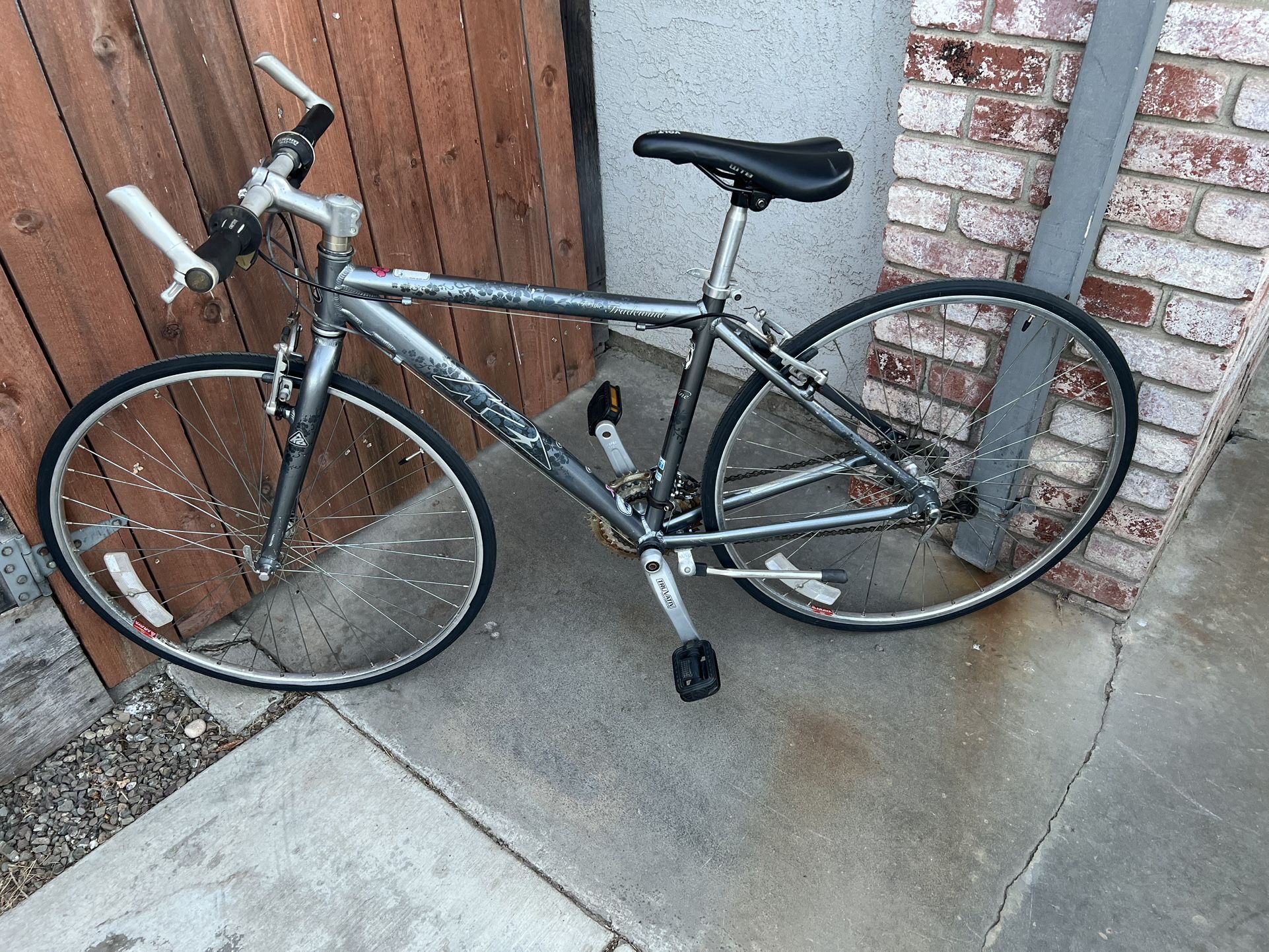 Serious buyers only please. K2 T Nine Tradewind bike. 700 size wheels. 18 1/4” frame size. 8 speed sprocket on the rear wheel. New tires, tubes, chain and rear axel are new. One wheel was trued. Shifters and brakes were recently adjusted. One wheel was trued. Good condition. No holds or trades. Pick up. OTY
