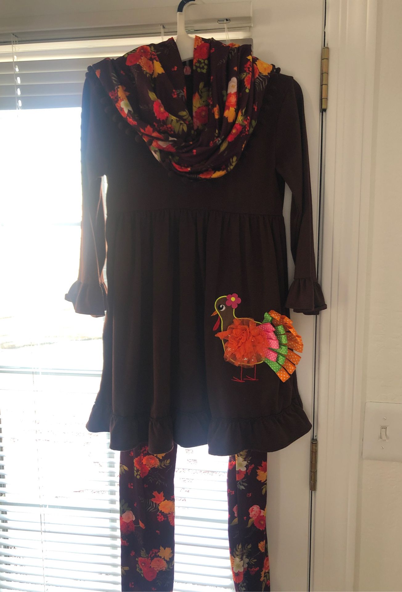 Very cute 3 piece thanksgiving outfit for little girl size 10/12 bought for 25 asking 10 obo worn once like new