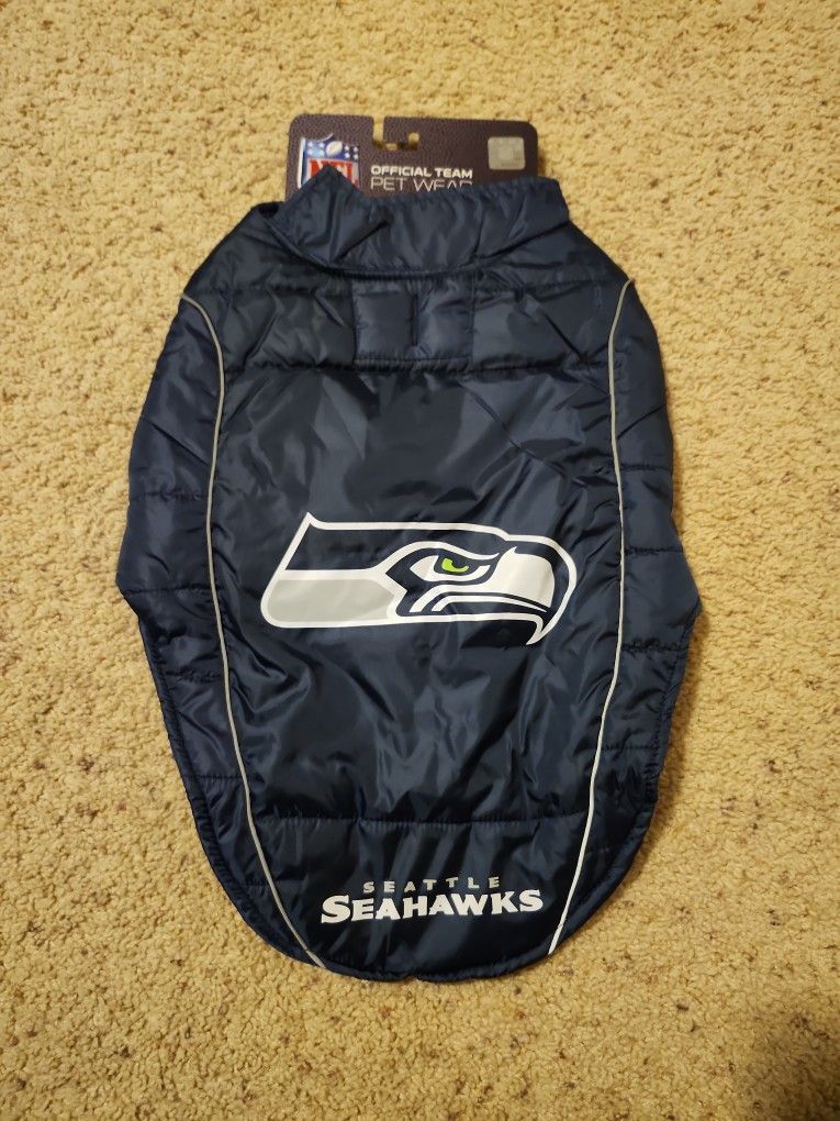 This is a brand new seahawks dog vest! Size large. Just didnt fit and missed the return window. Selling for a great deal!!! Thanks for looking and check out my other items for sale!