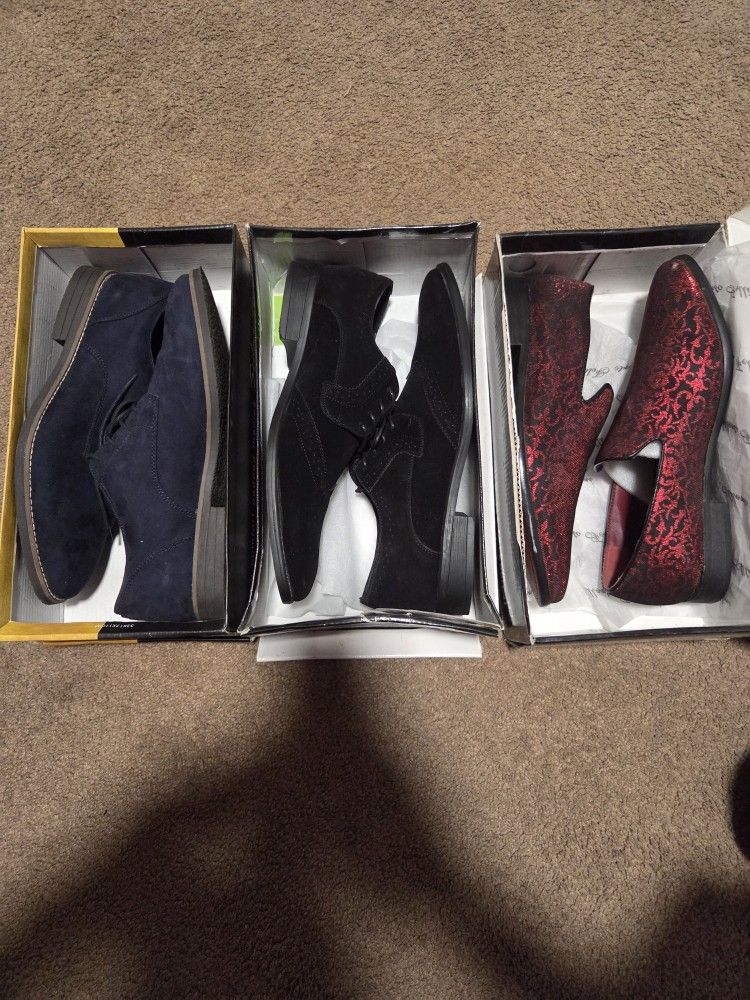 BRAND NEW MENS DRESS SHOES RED SIZE 9 BLACK SIZE 9.5 BLUE SIZE 10 $25 EACH