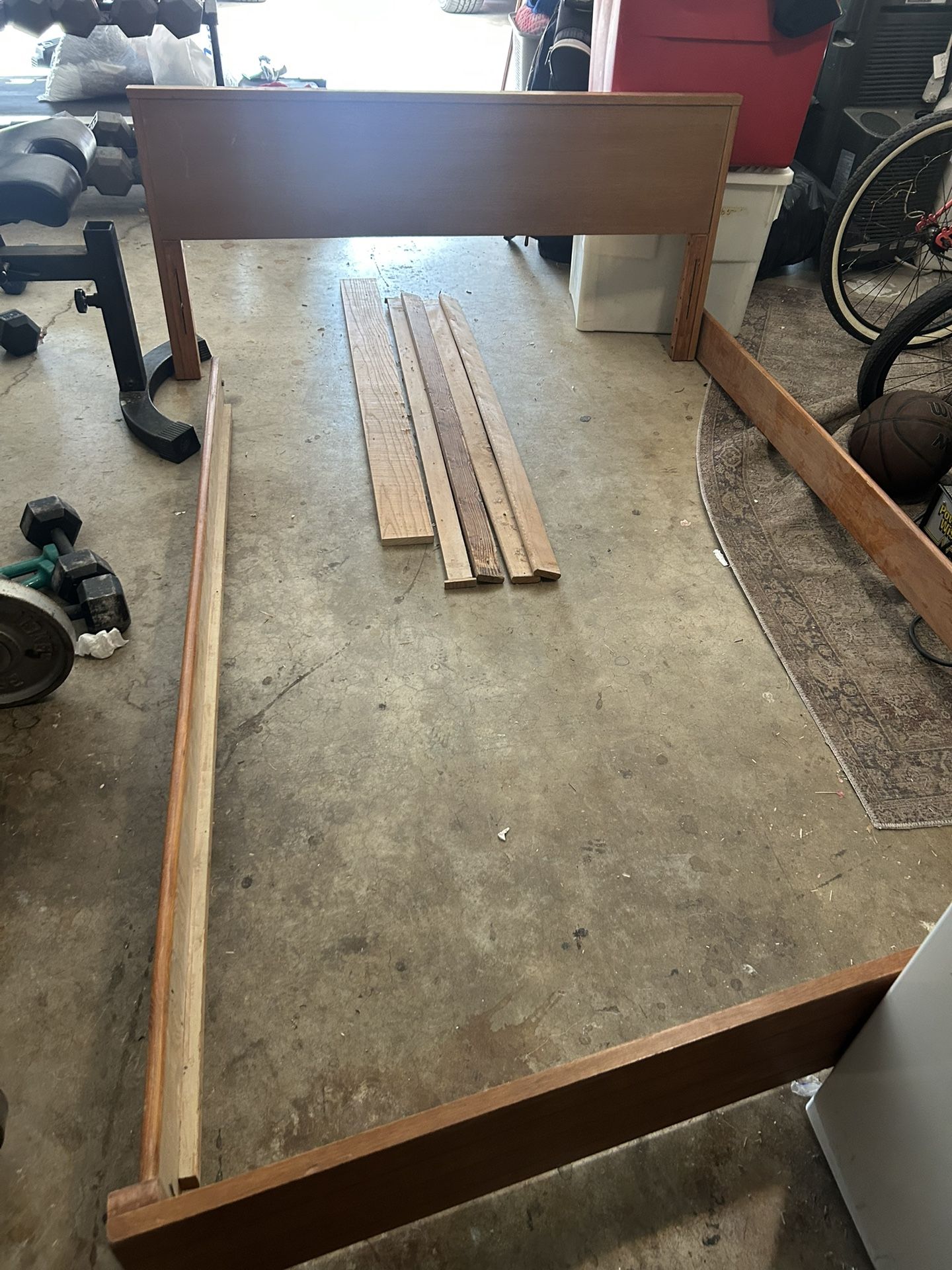 Selling a mis century bed that was used in a boys room but it’s universal. Headboard 57 1/2 x 27 Pick up only/no bolts are needed. Easily assemble or remove.