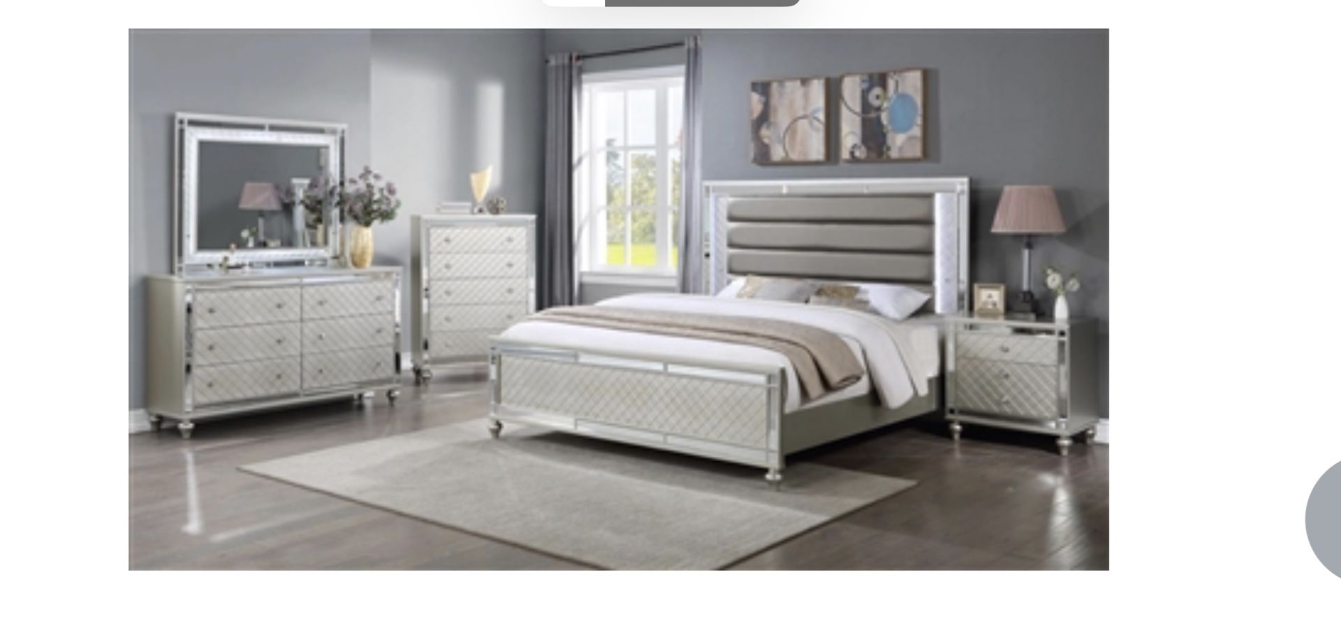 Price includes queen, bed, dresser, mirror, and one nightstand. Chest available for additional cost. ● Finish: White & Blue LED ● Modern & Glam Style ● Upholstered Headboard ● Slats & Support Legs Included ● Durable and Easy to Clean Headboard ● Mirror Accents Footboard & Headboard ● Headboard w/ LED Lights ● Crocodile Texture Design ● X-Shaped Accent Design ● Bed: 81"L X 63"W X 62" H 162.8 lbs ● Nightstand: 28"L X 18.3"W X 28.8"H 66 lbs ● Dresser: 62"L X 18.3"W X 37.8"H 176 lbs ● Mirror: 49.5"L X 1.3"W X 40.3"H 55 lbs ● Chest: 36"L X 18.3"W X 52"H 171.6 lbs
