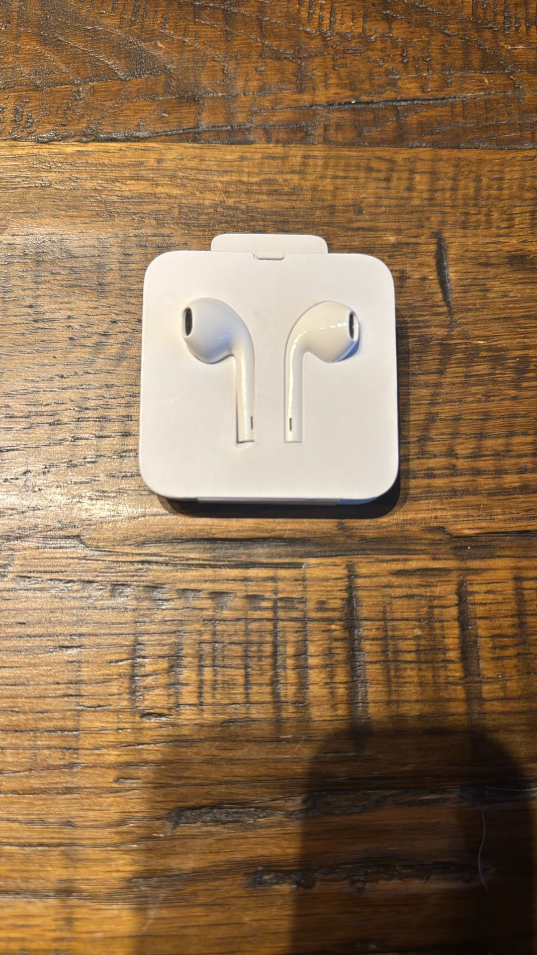 Brand new, in sleeve. Unlike the traditional circular ear buds the design of these ear pods is made for the geometry of the ear, making them more comfortable. The speakers have been designed to maximize sound input and minimize sound loss, for high-quality audio. Wired ear buds with built-in remote that allows you to adjust volume , control playback of music and video, and answer or end calls with a pinch of the cord.