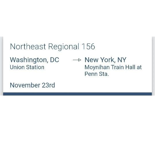 Amtrak ticket November 23rd, Washington, DC to New York, 2:30 p.m. for sale