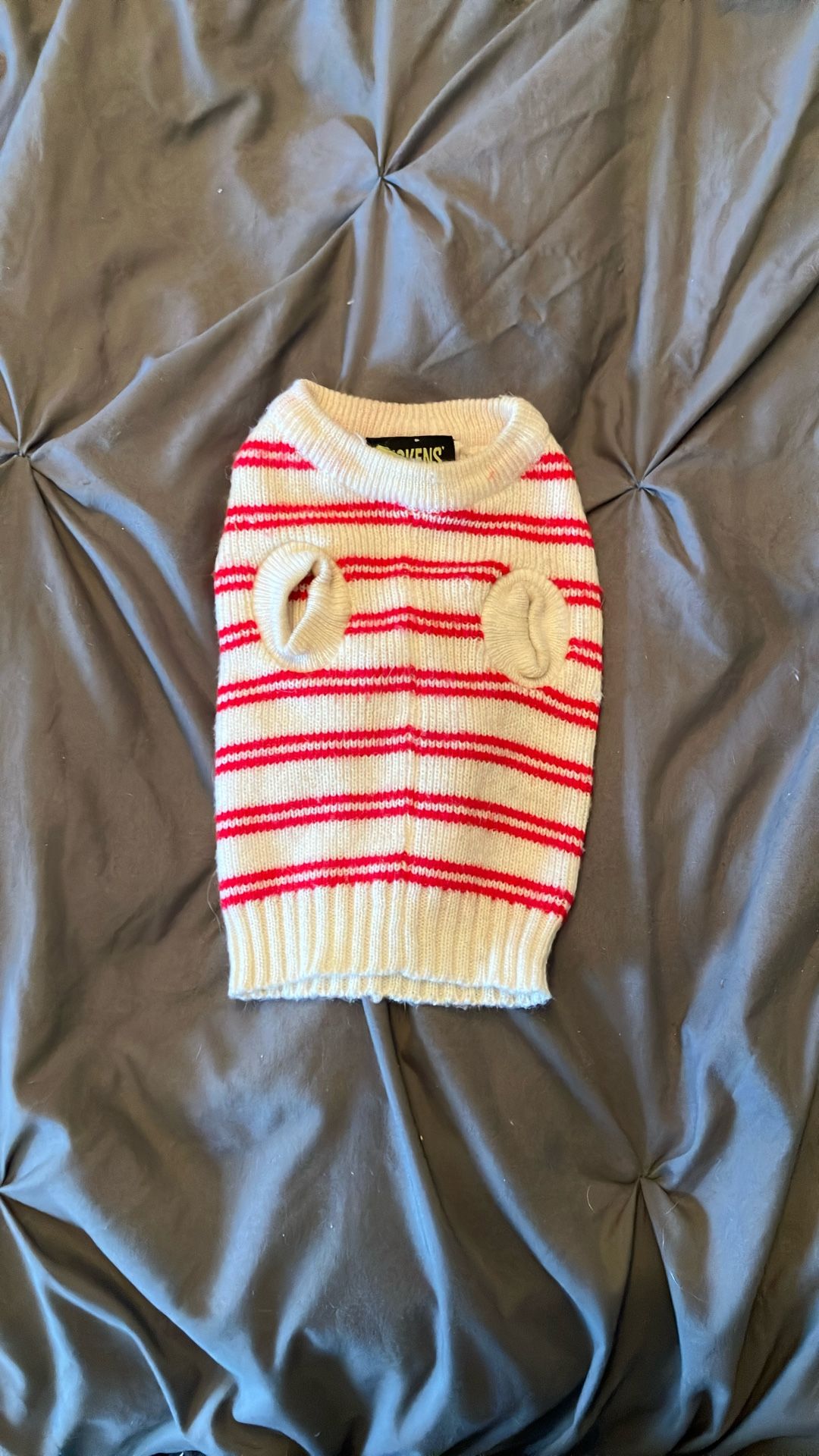 Small Dog Xmas Vest By Petco, white with red stripes Size small, washed and ready to wear. Fits terriers, chihuahuas, poodles, snauzers, etc See my other posts for more