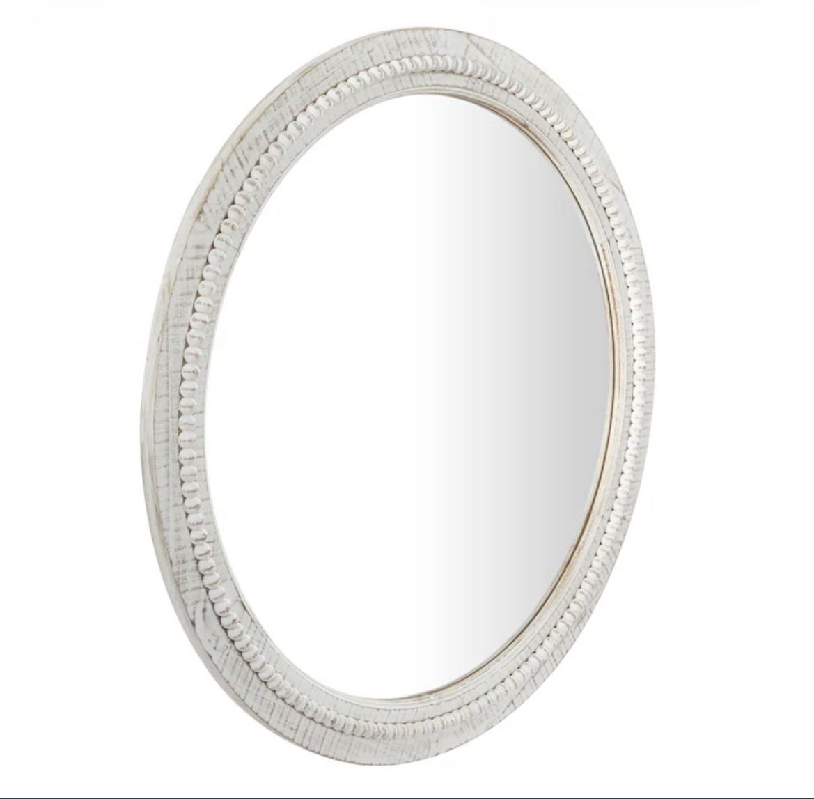 Grayson Lane round white carved beaded frame wall mirror for sale ‼️