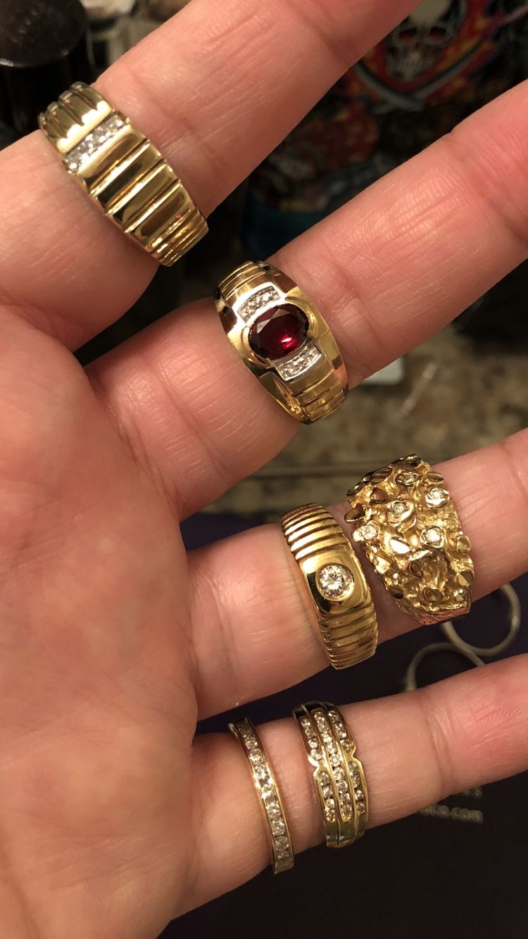 Selling 10k gold men’s ring never worn .aprixx 4 grams with diamonds and a red garnet 1.5 carat stone size 10.5 Hablo español