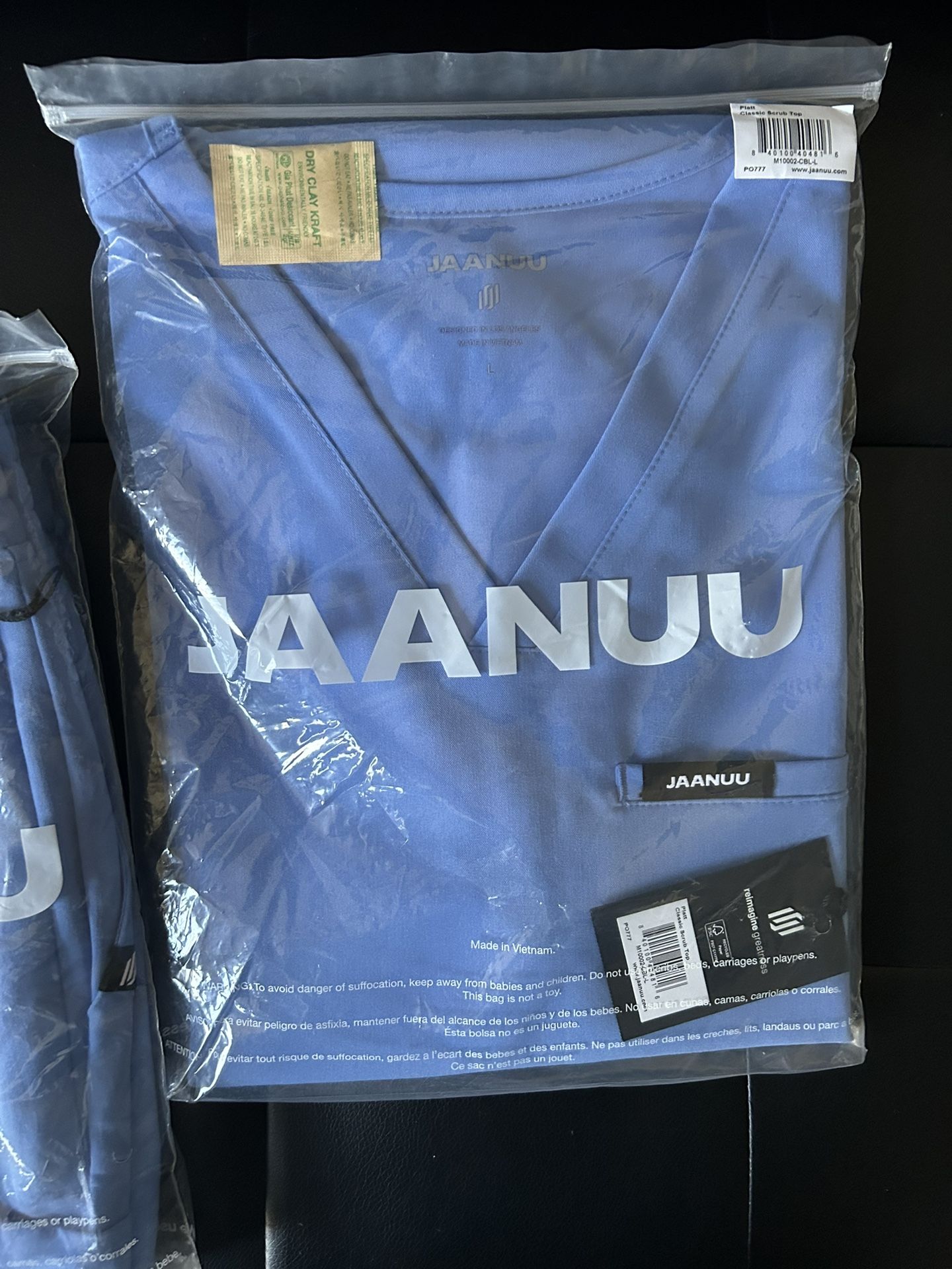 Jaanuu scrubs size L One is slim scrub top with slim scrub jogger Straight scrub pant with slim scrub top Brand new.