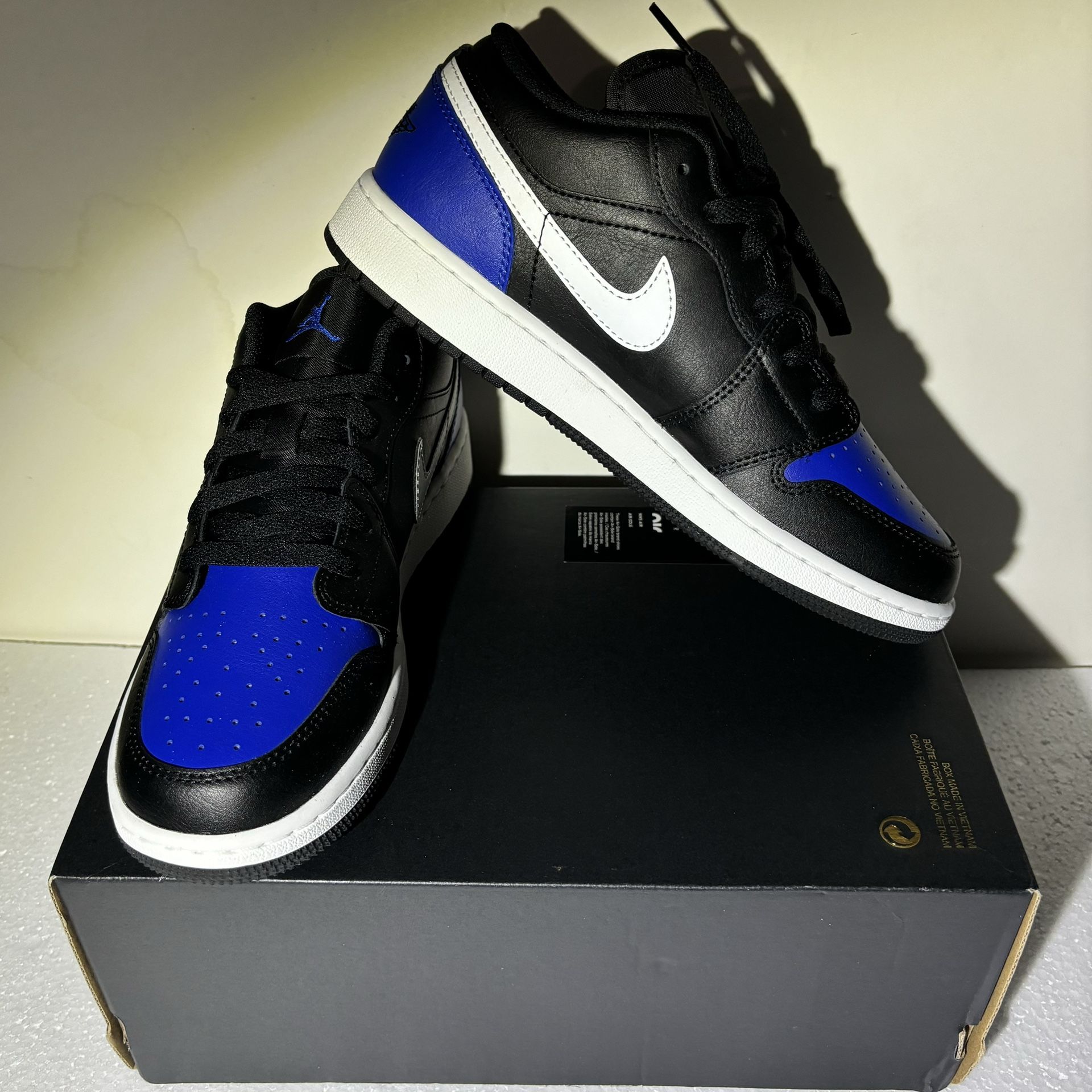 NEW Nike Air Jordan 1 Low GS Size 6Y Black White Game Royal **BOX IS CUT/MISSING LID**