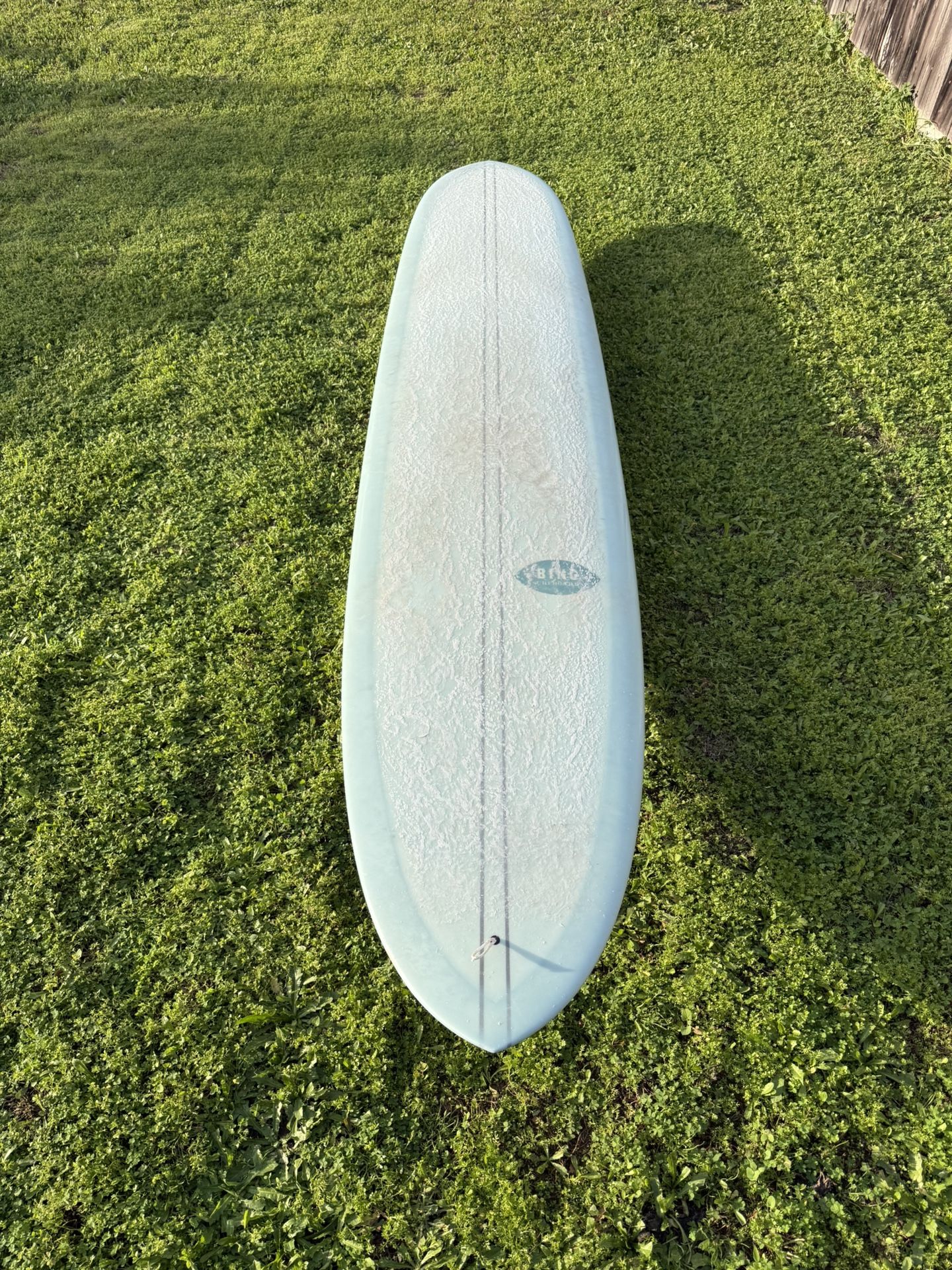 9'8" x 23.125 x 3.06 In great condition, one professional fix in the nose. Bing Surfboard Description: The California Pintail Type 2 is our Pintail version of the California Square Type 2. As with the square tail, Matt’s quest from the beginning was to make the ideal board for California’s point, reefs, and beach breaks. It’s has been a long process of making refinements, countless prototypes to expand the type 1 capabilities. The challenge was making the new version that can cruise and noseride on slower surf yet fast and responsive in steeper waves. This was possible with a long gradual tail rocker that starts from the middle of the board. This rocker is more efficient and increases the wetted surface for control and speed. I also pulled in the tail. The subtle rolled bottom and soft pinched 50/50 rail gives the board a smooth classic turn and glide. The overall widths and thicknesses are low compared to other Bing models in turn making it friendly.