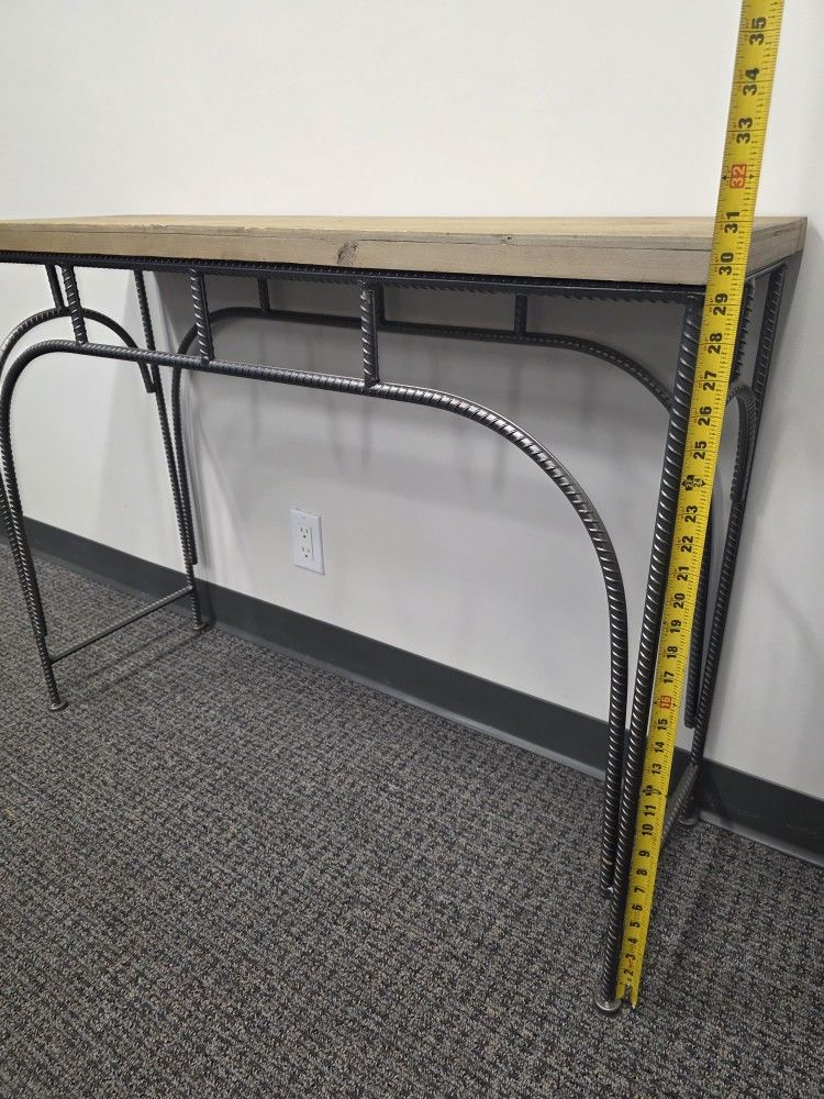 Industrial Console Table β Wood & Rebar Metal Base Add a unique industrial touch to your space with this custom console table. The top is made from solid, rustic wood, and the base is constructed from sturdy rebar steel, giving it a modern, urban look. Great for an entryway, office, or behind a sofa. Dimensions: Height: 34 inches (approx.) Width: 14 inches (approx.) Length: 42 inches (approx.) Condition: Good, solid and stable. Shows slight natural wear on the wood surface, adding to its rustic appeal. π Pickup in Arcadia, CA π΅ Asking: $35 or best offer Message me if you're interested or have questions!