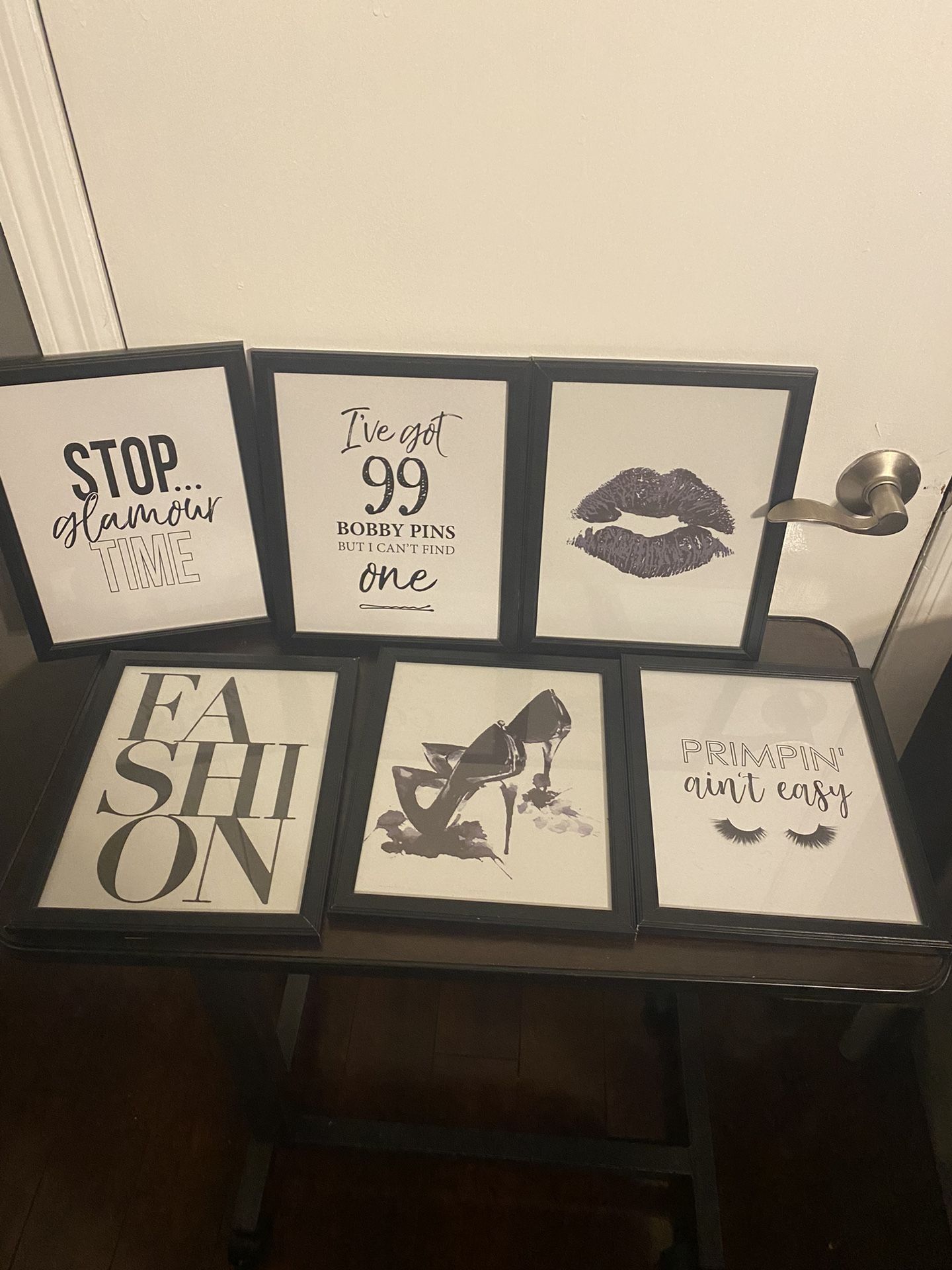 Six stylish pictures Black & white with black frame Picture is 8x10 in frame is 9x11 All 6 pictures for $15 or $3.50 single picture