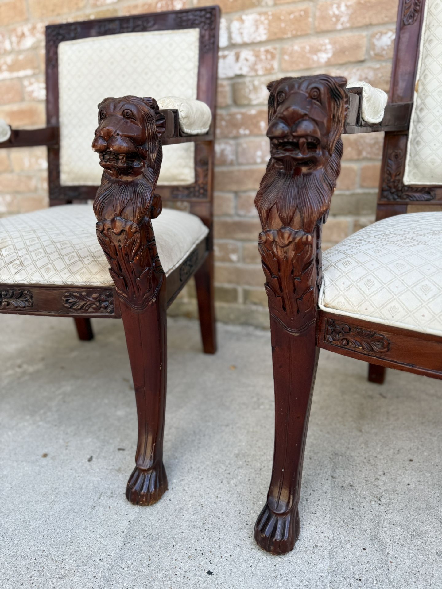 Pair Of Lion Carved Ornate Rosewood Formal Chairs