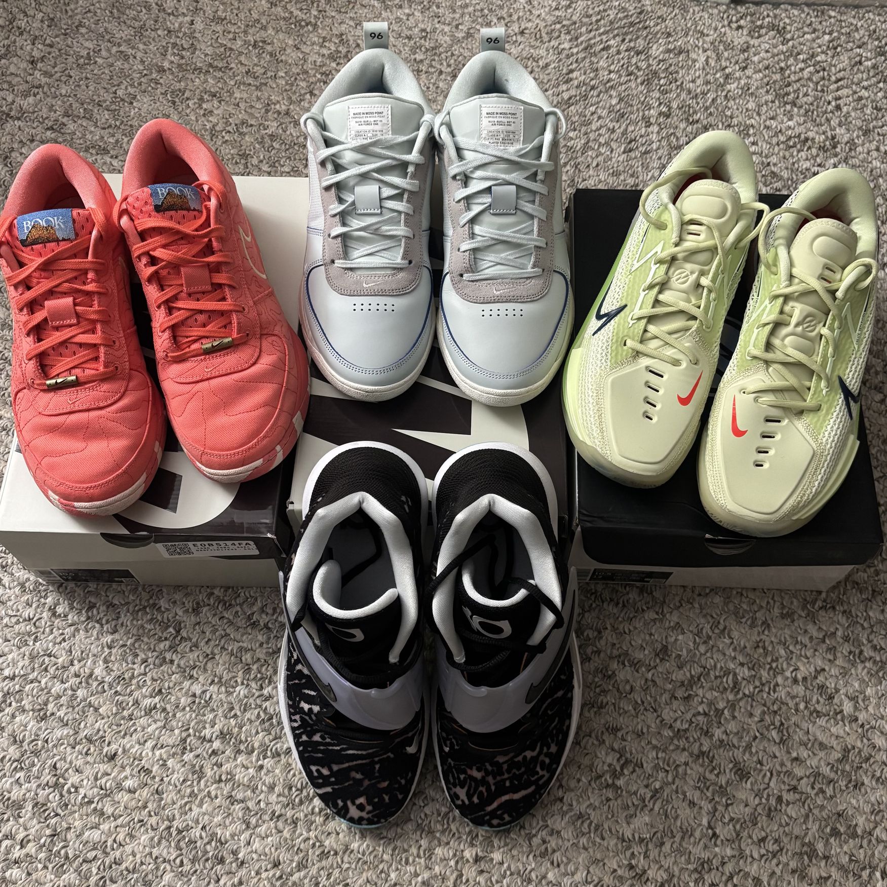 WTS: Nike Book 1 ‘Sedona’, worn once, with box - $70 Nike Book 1 ‘Moss Point’, worn once, with box - $80 Nike GT Cut 1 ‘Lime Ice’, worn a few times, with box - $100 Nike KD 14, worn a few times, no box- $100 All Size 10.5 Asking prices listed above, no low ballers! Serious inquiries only! Message me for more details. Get them fast, need to clear out my shoe collection.