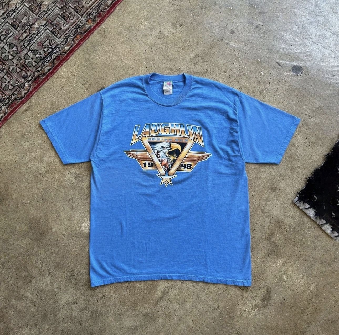 Vintage 1998 Laughlin Spring Run Blue Graphic Biker T-shirt, Size XL