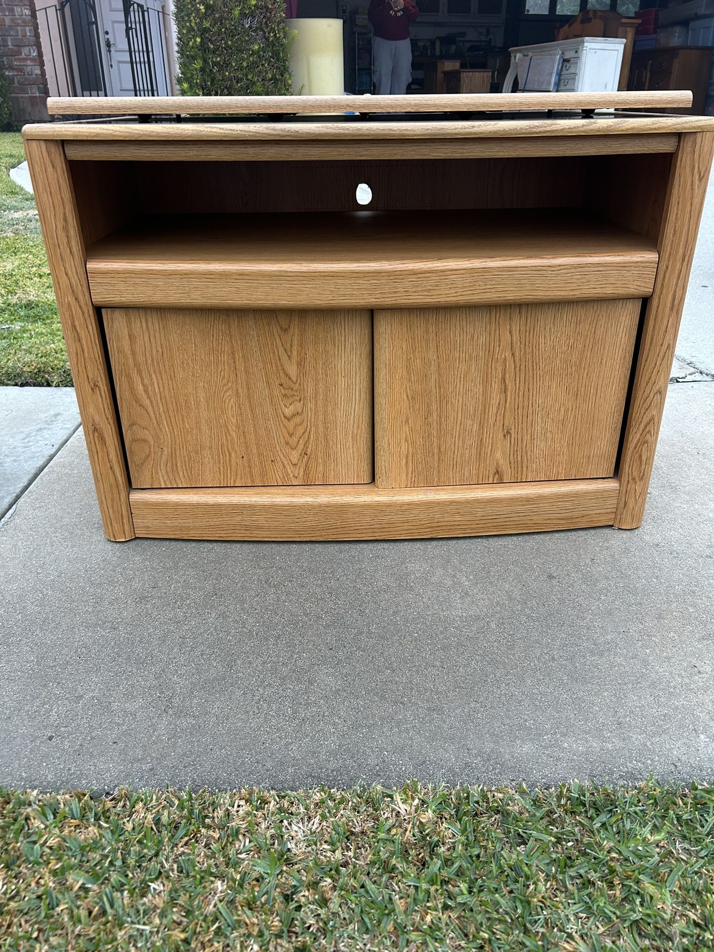 TV stand with swivel top and ample storage beneath. 35x21x27. Priced to sell. Moving soon. Need gone