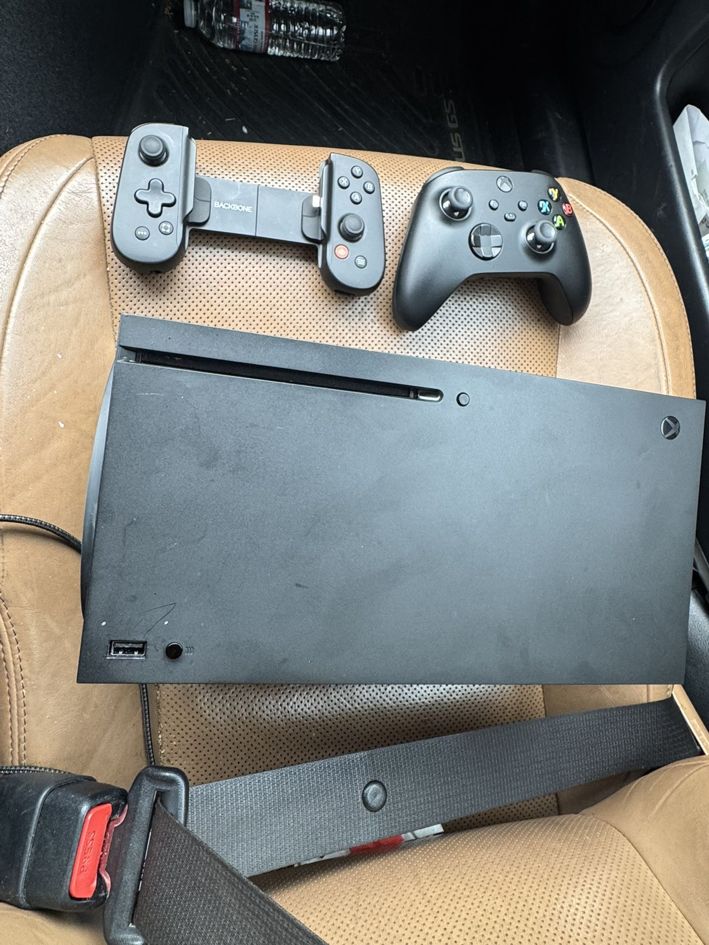 Xbox works perfectly fine come with controller and cords. I added the backbone remote play to make it a good deal so we both can both walk away happy. This backbone is for the C-type phones