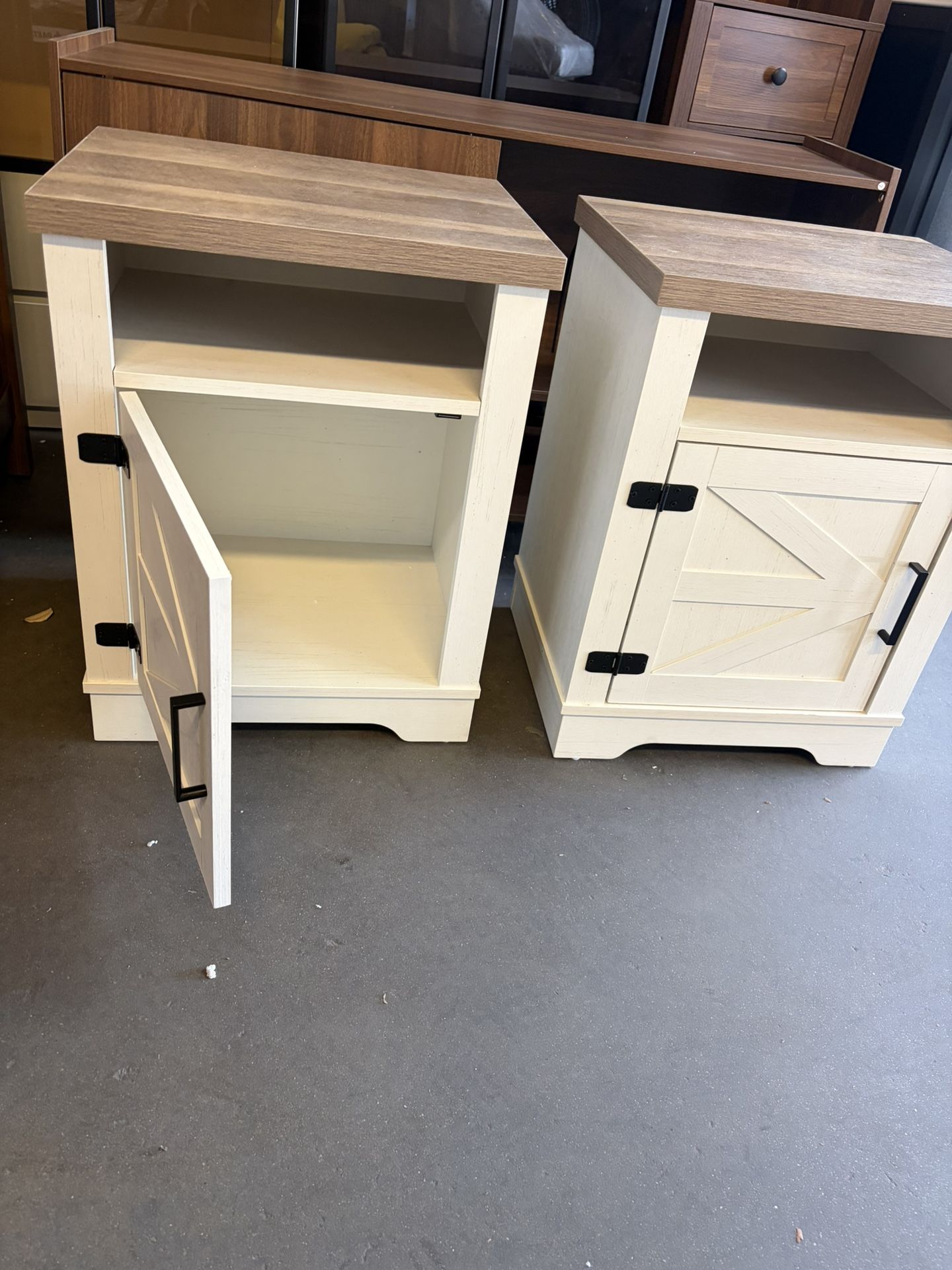 It’s in the box not assembled/Farmhouse Nightstand Set of 2 , Rustic Beside Table with Barn Door and Open Shelf for Living Room Bedroom Office , White
