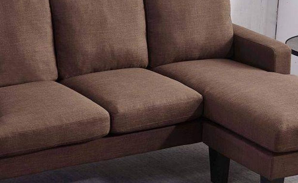 BROWN LINEN FABRIC SECTIONAL SOFA REVERSIBLE CHAISE - SILLON SECCIONAL MUEBLES