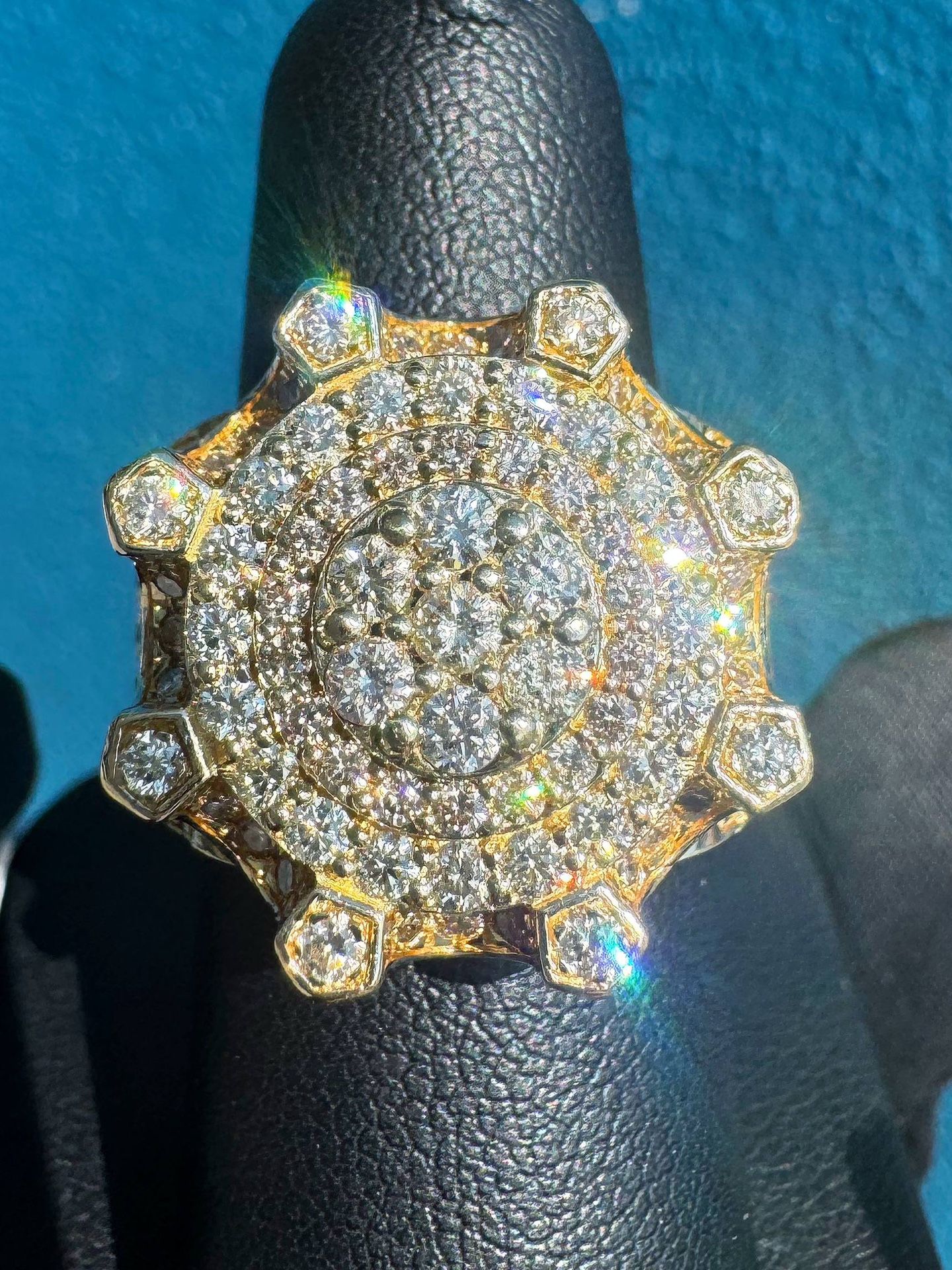 This gorgeous ring is made of solid 10k yellow gold with natural diamonds round shape. Ring size: 7.75. Total weight of diamonds: 5 carats. They are Vs-Si mixed clarity, G-H color. Total weight: 15.9 grams. This accessory is in new condition. Comes with nice jewelry box. This super stylish ring with fashion design will complement any outfit. And let everyone know who the king is here! The best choice for you. Perfect gift! ❤️💍🎁 We buy Rolex and Audemars, patek . Do layaway in vipawn Boca Raton 🔥💎💸
